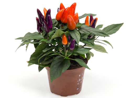 Mambo is a compact growing series with dark foliage and shiny conical fruits of 3.5 x 1.5 cm.